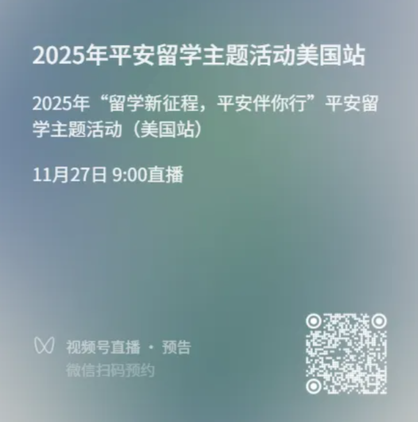 由中国驻美国大使馆、教育部留学服务中心主办,中国人民大学承办的2025年“留学新征程,平安伴你行”平安留学主题活动(美国站)将于北京时间11月27日9:00举行,活动直播将同步进行。现请校属各单位组织有意向赴美及其他国家地区的留学人员按时观看。直播路径如下: